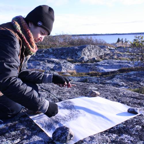 My current project, ‘Land; Relations’, is supported by a Chalmers Fellowship. This is a multi-faceted project with an immersive research component through which I’ve been investigating colonial conventions of landscape art (and their impact on Canadian artistic identity) as well as local and regional Indigenous teachings and stories relating to the Land.